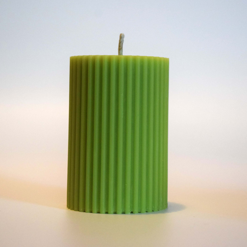 Olivenwachskerze, nachhaltige Kerze, grüne Deko-Kerze, vegane Kerze, Designkerze, gerippte Kerze, umweltfreundliches Wohnaccessoire