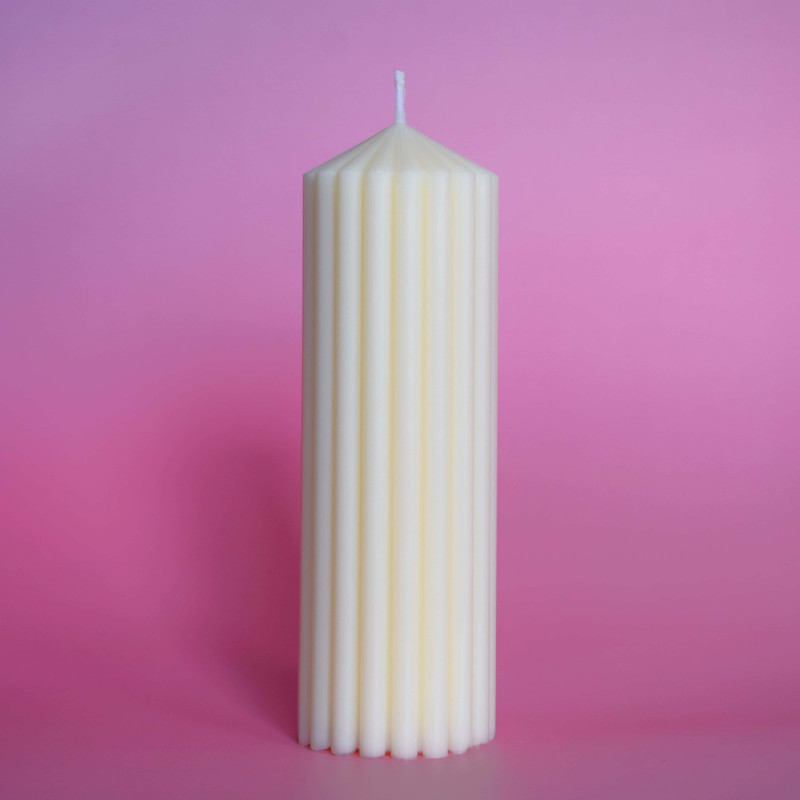 Olivenwachskerze, nachhaltige Kerze, grüne Deko-Kerze, vegane Kerze, Designkerze, gerippte Kerze, umweltfreundliches Wohnaccessoire
